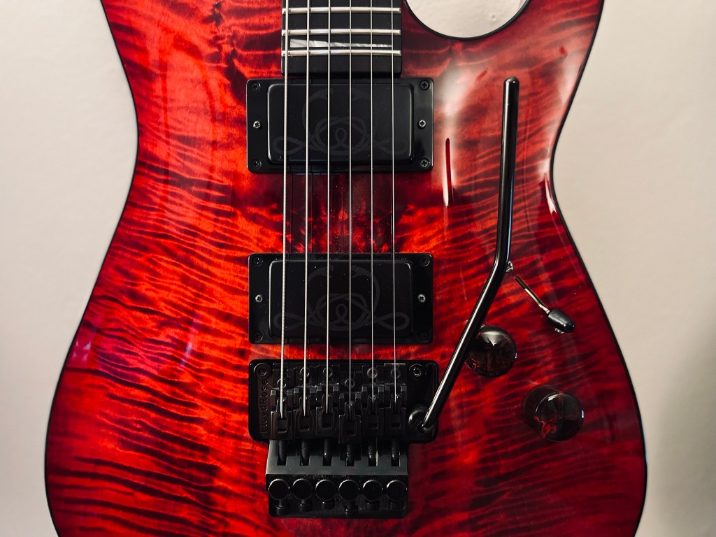 I opted for the EMG Pickups 81/85 set as I currently have the 57/66 set in my PRS 20th Anniversary SE Custom 24. Obviously, I had the guitar routed for a Floyd Rose, so after doing some work for my friend Eligio Tapia of Crepuscle, we actually traded some of his old ESP E-II Arrow black hardware while he upgraded it to gold hardware.